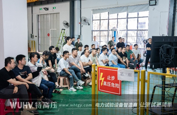 前來培訓的學員被分為三個小組,來到高壓試驗現場,并分配了導師現場為大家答疑解惑,講解設備的操作!