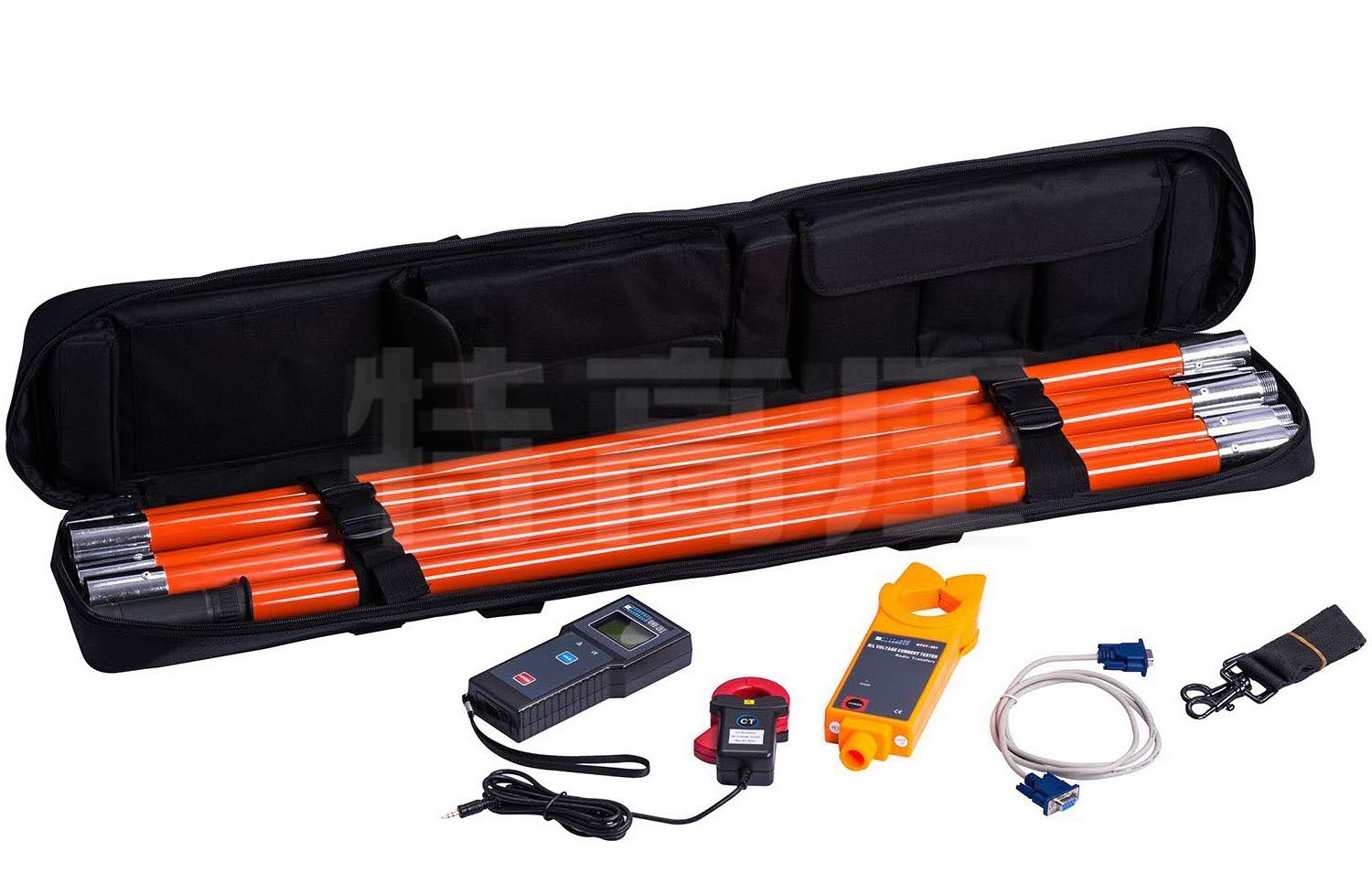 - 1、采產品由一次電流鉗(高壓檢測儀)、二次電流鉗、主機、高壓絕緣桿、監控軟件、通訊線等組成,一次電流鉗采用無線傳送測試數據,傳輸距離100米。