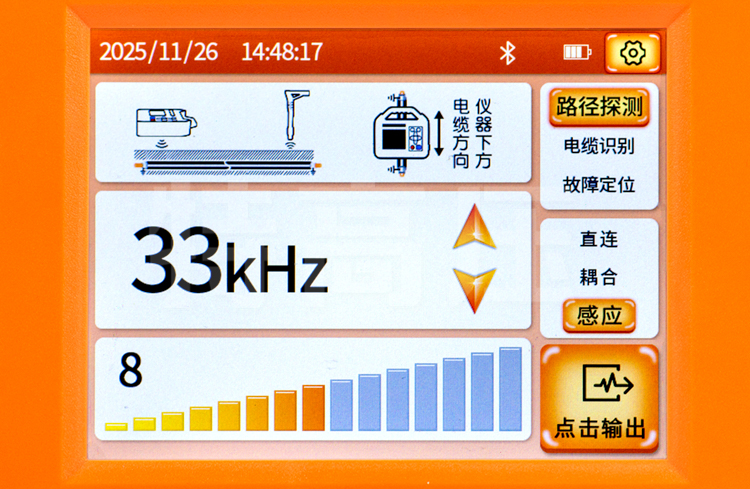 - 3、導線巡航模式:360°全方位管線路徑指示,連續顯示深度、電流和管線相對位置。界面簡潔直觀,無需經驗即可進行操作。