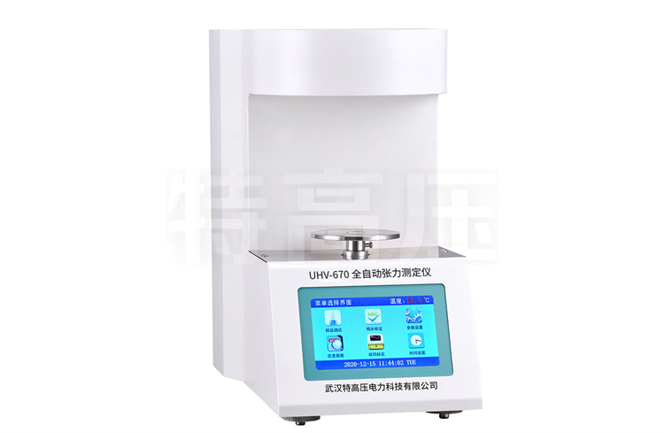全自動張力測定儀,按照GB6541-86《石油產品油對水界面張力測定法》(圓環法)標準要求,測量各種液體的表面張力(液—氣相界面)及礦物油與水的界面張力(液—液相界面)。儀器采用彩色觸摸屏顯示,全漢字菜單提示的無標識按鍵,自動化程度高,工作可靠,重復性好,操作極為簡單,只需開機后按菜單提示操作,便可完成全部試驗。